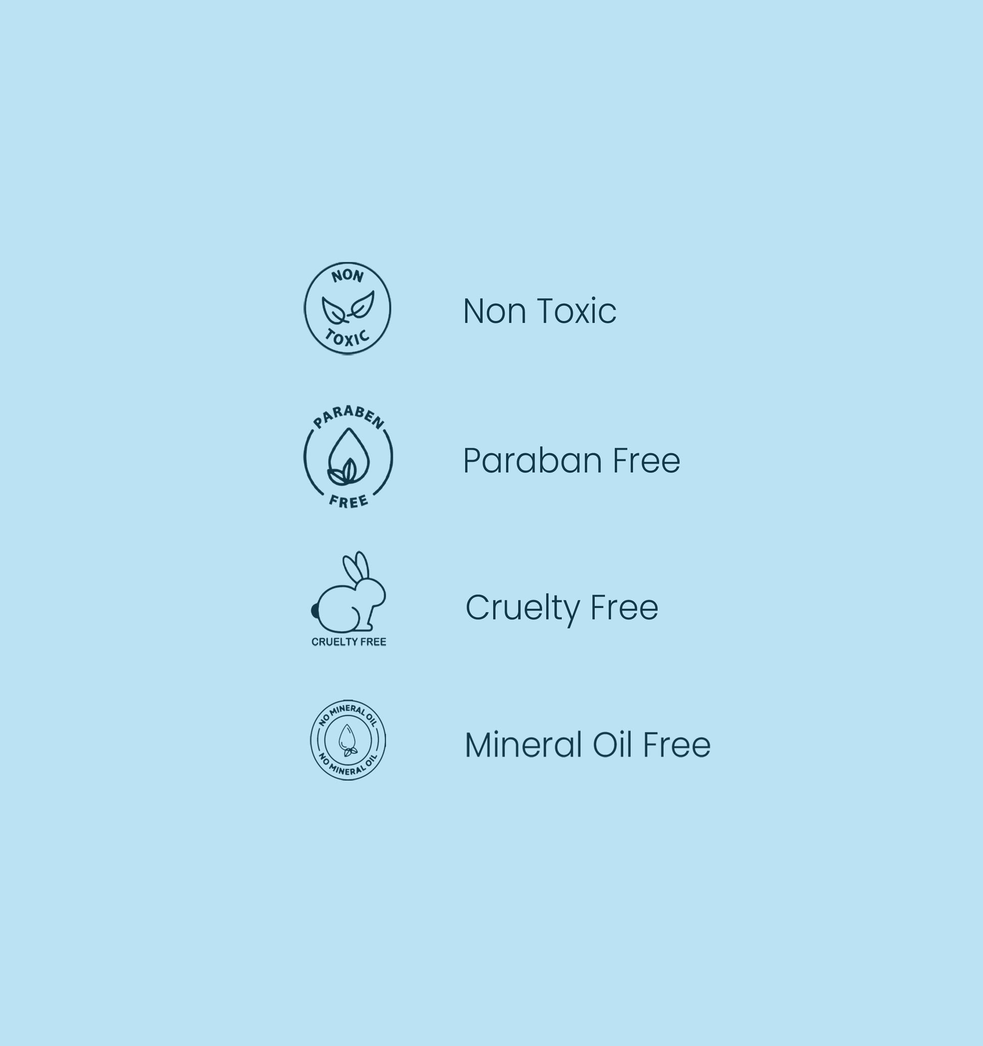 Paraben free, mineral oil free, cruelty-free, non-toxic