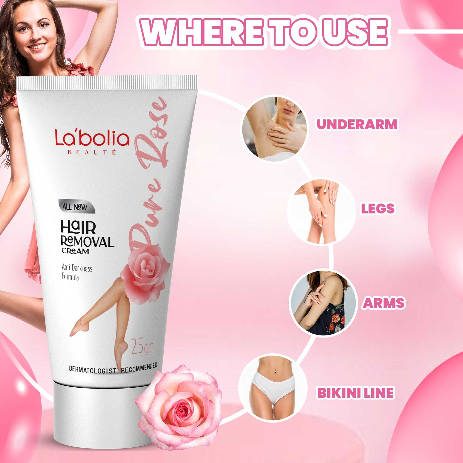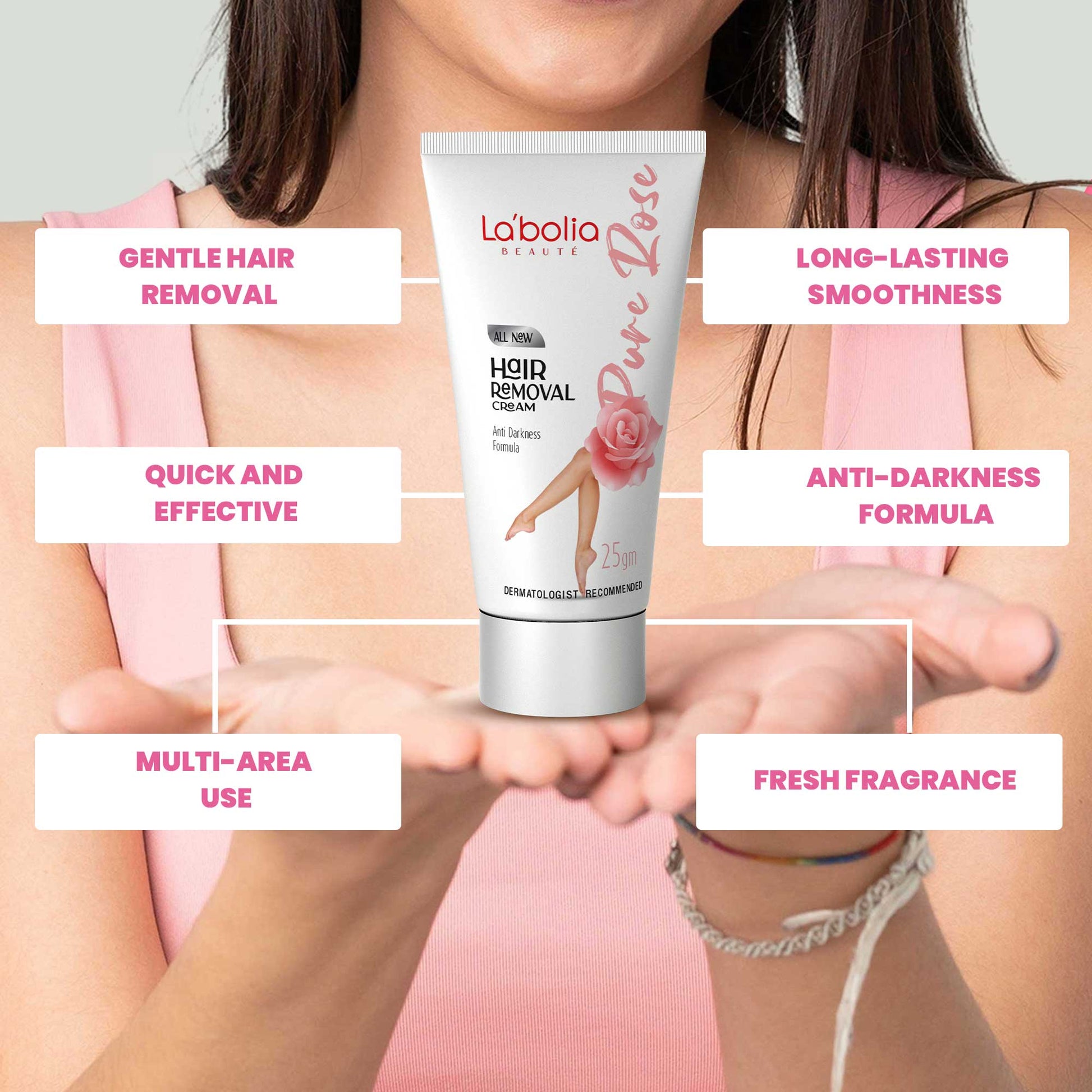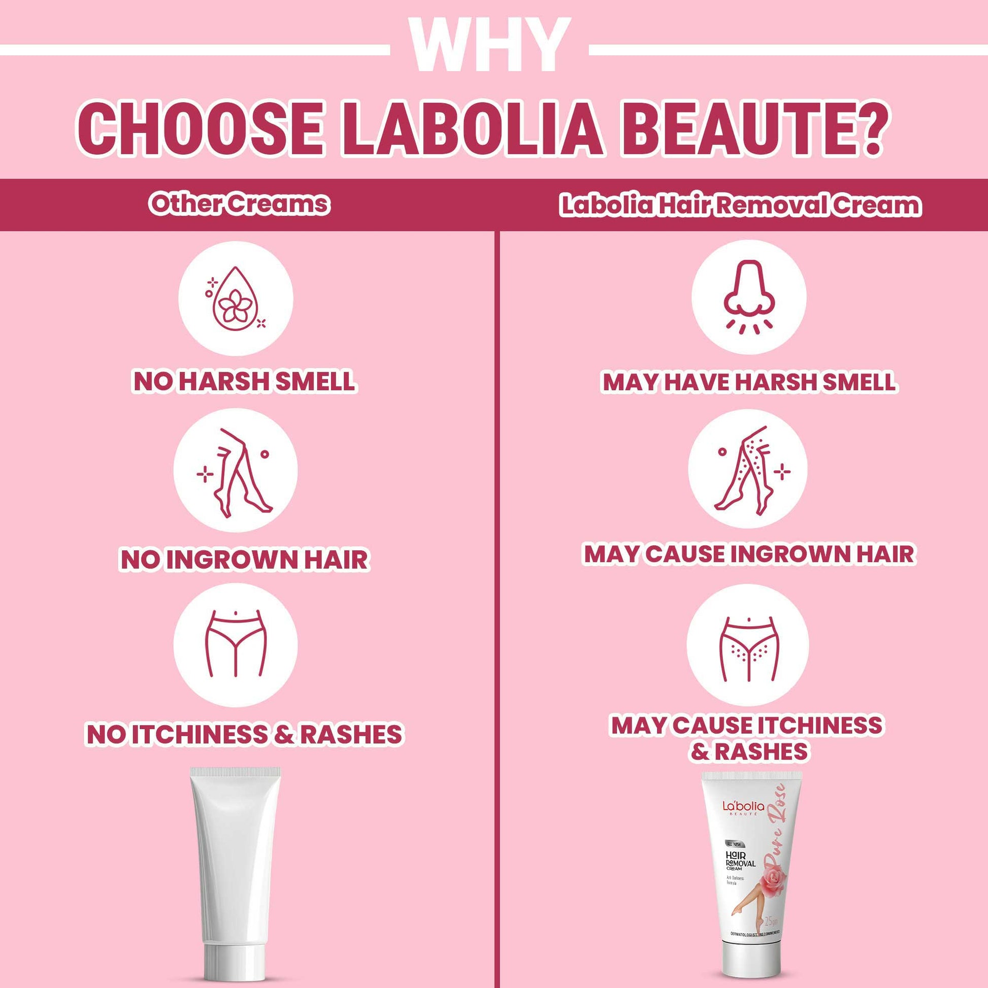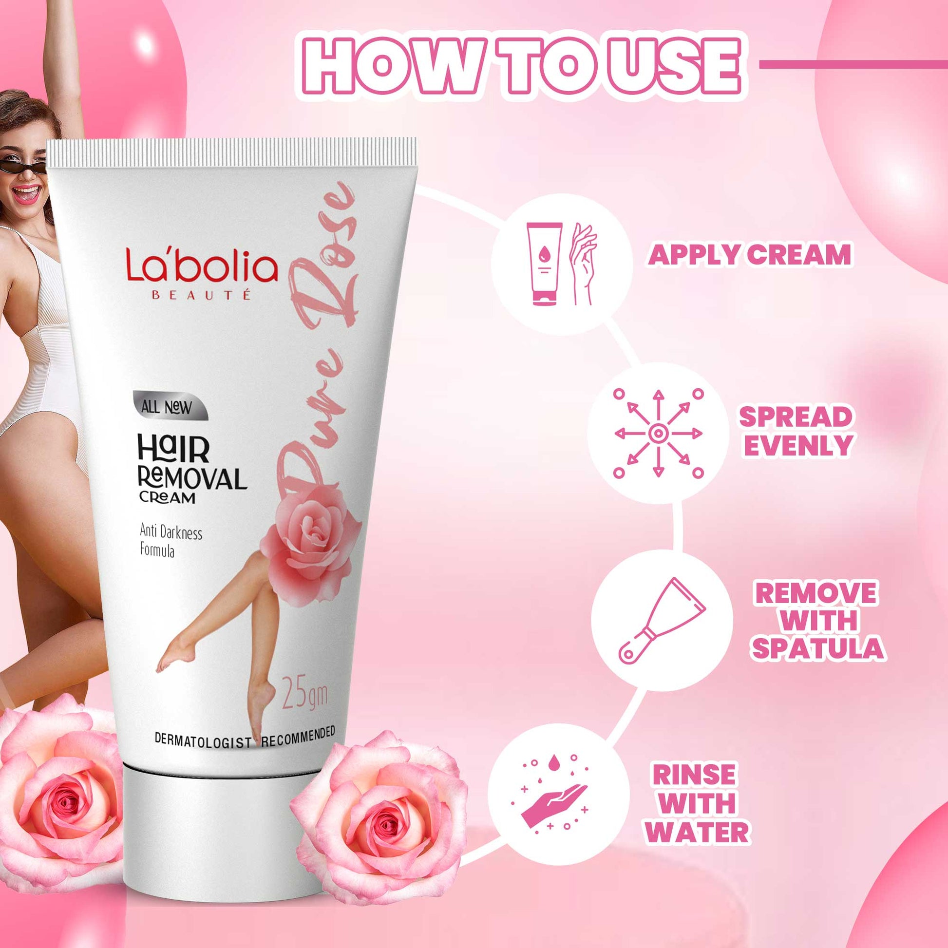 Labolia Beaute Rose Hair Removal Cream helps in removal of hair in as little as 5 minutes. It is an anti-darkness formula i.e. it leaves behind brightened & hydrated skin. It removes even the shortest of hair quickly. It has been tested and marked safe for bikini, arms, legs & underarms. It soothes your skin and protects it from dryness and itching. It helps in reducing skin inflammation.