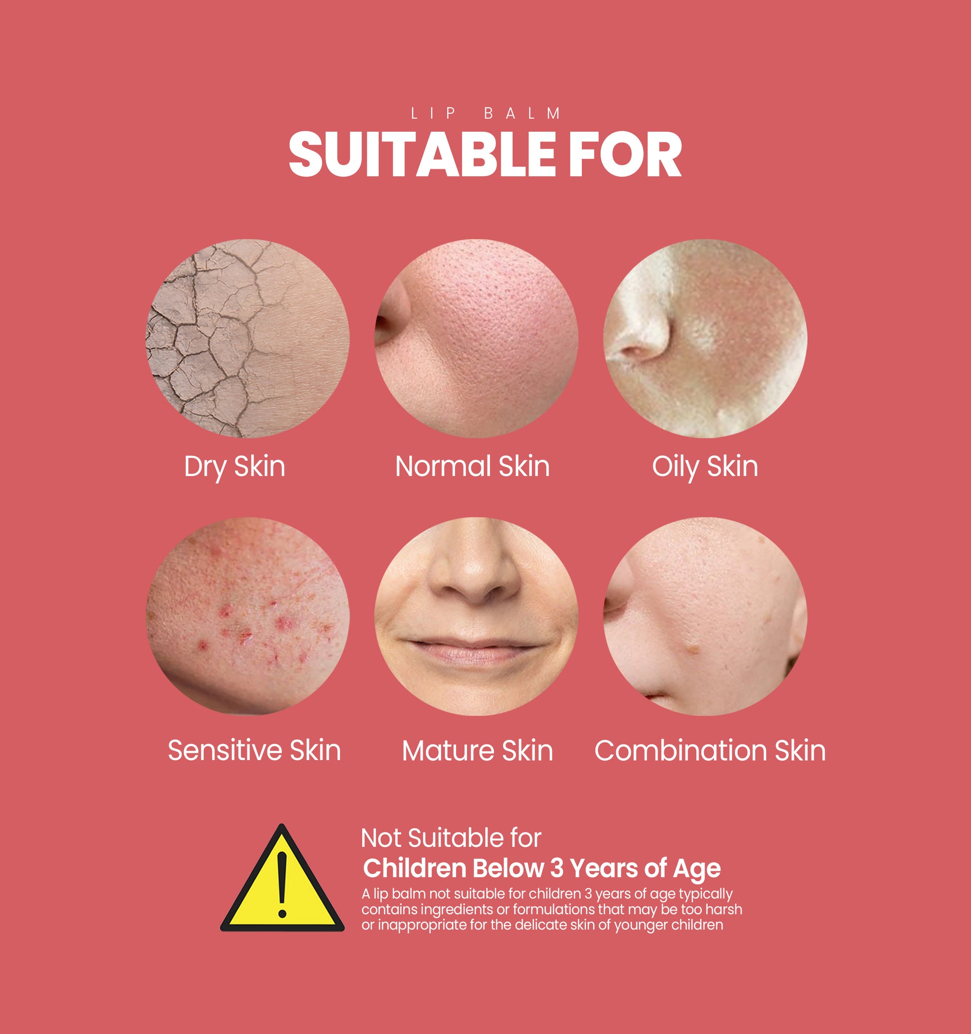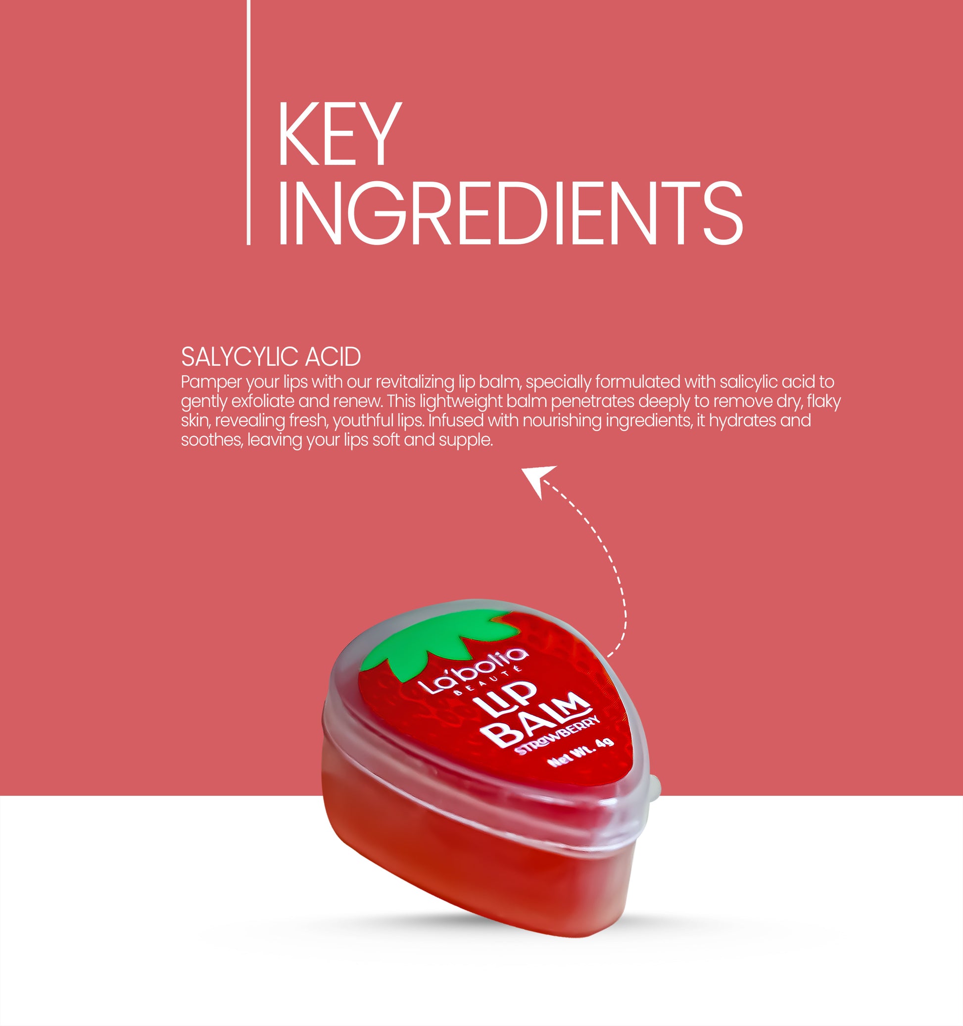 Salicylic acid in lip balm gently exfoliates dry, flaky skin, unclogs pores, and promotes smoother, softer lips. It also helps soothe irritation and maintain healthy, hydrated lips.
