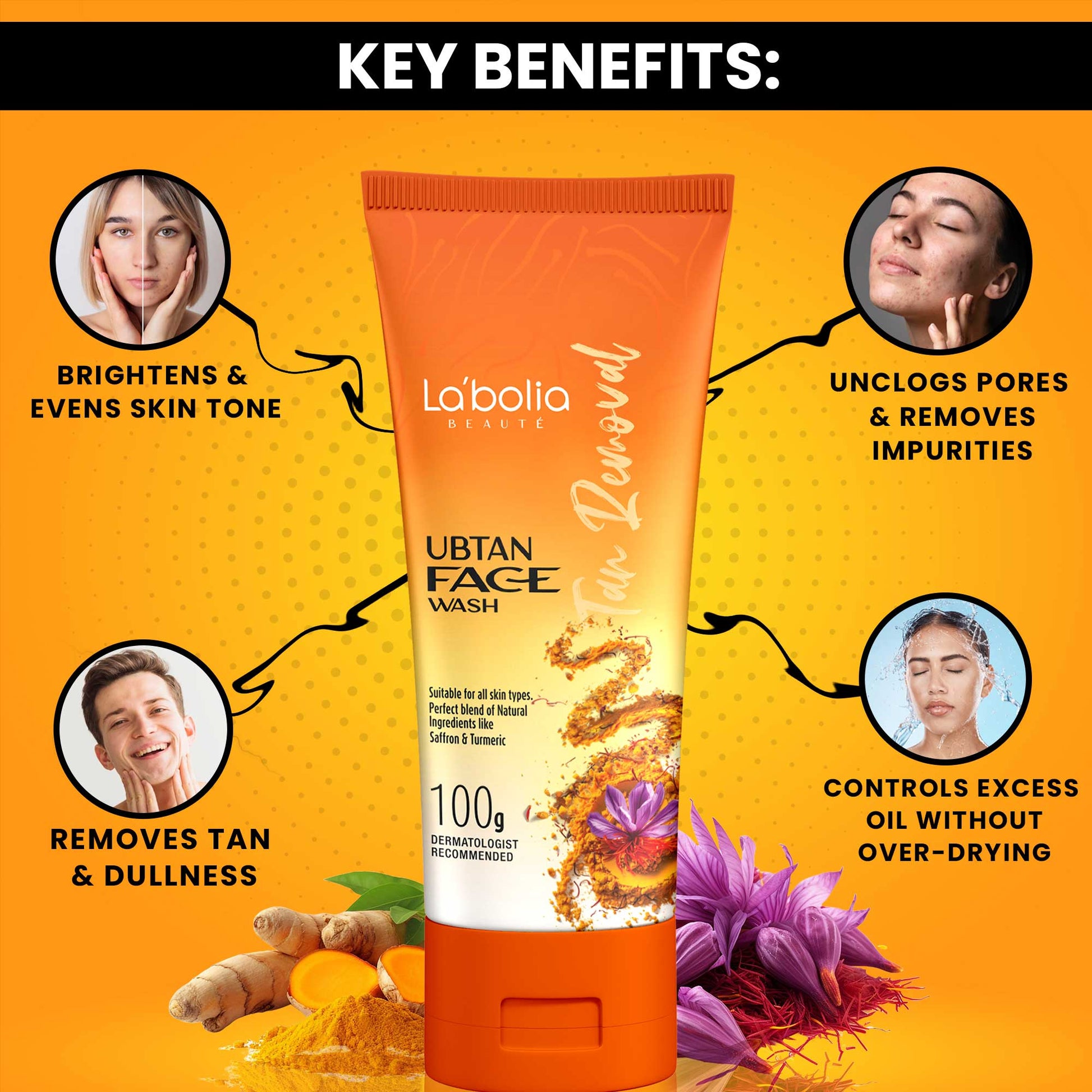 It is a perfect blend of natural ingredients like saffron, turmeric, rose water and moisturizing agents like vitamin b5 and vitamin e. It helps in tan removal and gives a radiant glow right after first application.